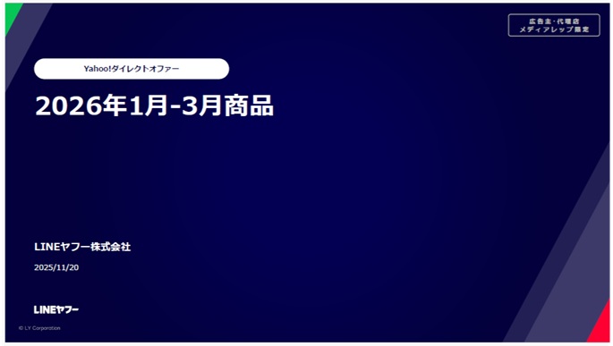 Yahoo!ダイレクトオファー最新のセールスシート(2026年1月-3月)のご案内です。
